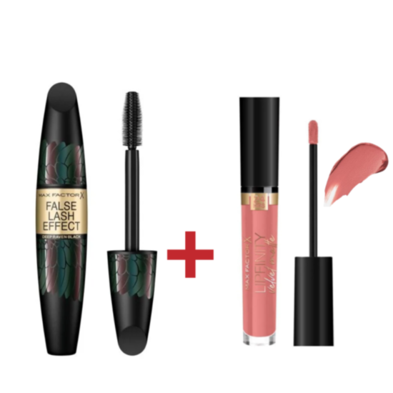 МАКС ФАКТОР КОМПЛЕКТ СПИРАЛА ФОЛС ЛАШ ЕФЕКТ RAVEN 13МЛ + ТЕЧНО ЧЕРВИЛО ЛИПФИНИТИ ВЕЛВЕТ МАТ 030 /64808+79190/