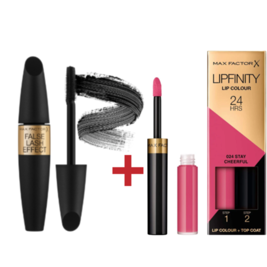 МАКС ФАКТОР КОМПЛЕКТ СПИРАЛА ФОЛС ЛАШ ЕФЕКТ 13МЛ + ДЪЛГОТРАЙНО ЧЕРВИЛО ЛИПФИНИТИ 024 /39238+76657/