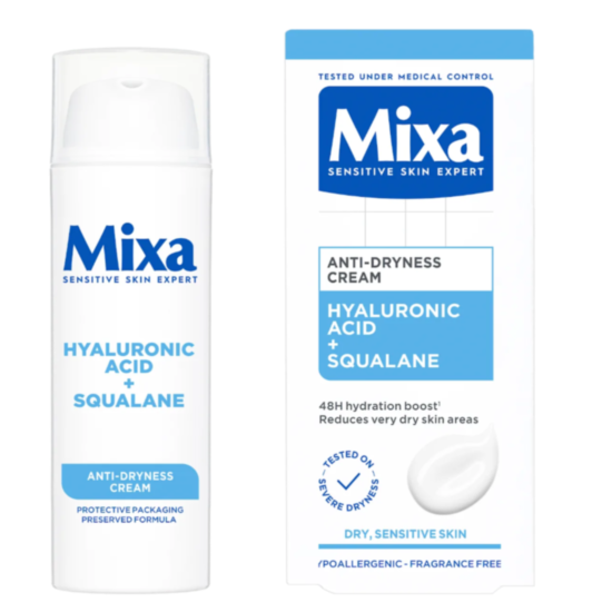Подарете на кожата си интензивна хидратация до 48 часа и дълготраен комфорт, без усещане за опъване с крема за лице на Mixa. Продуктът се отличава с освежаваща и лека текстура, която не предизвиква комедони. Формулата му е обогатена с дерматологично активни съставки: хиалуронова киселина, която е известна със своите мощни хидратиращи свойства и ефективно се бори със сухата кожа, и сквалан, който подсилва защитната бариера на кожата. За хидратирана и здрава кожа с Mixa.