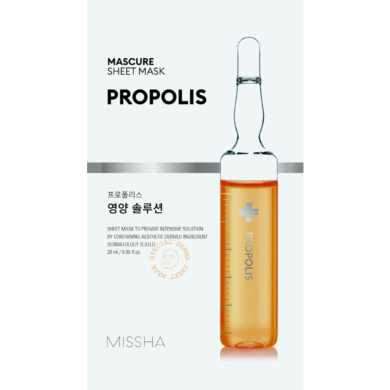 Подхранваща текстилна маска за лице с прополис, която успокоява и изглажда кожата на лицето. Изгражда защитен слой и прави кожата по-здрава и еластична. Съдържа екстракт от прополис. Прополисът е смес от смоли, восък и прашец от растенията, обогатен с ензим от обработката на пчелите. Богат е на витамини, етерични масла, соли и микроелементи.  Кожата се снабдява с подхранващи вещества и клетките се регенерират. Лека текстура, която има подхранващо действие върху кожата.