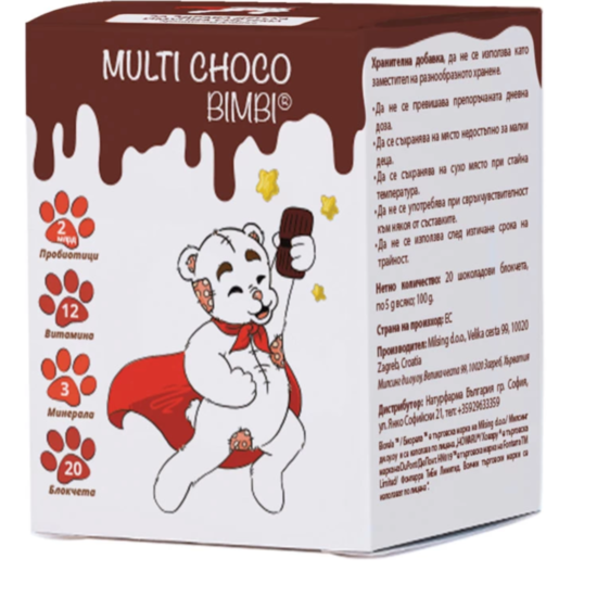 - Педиатрите и фармацевтите в и извън Европа оценяват всички предимства на Multi Choco Bimbi®, иновативния състав, вкусната форма, както и значителния научен опит с всички включени компоненти.