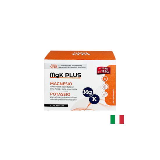 Sanavita MgK Plus / Магнезий + Калий, 30 сашета e хранителна добавка на Paladin Pharma, Италия. Продуктът подпомага нормалното състояние на мускулите и сърдечно-съдовата система.