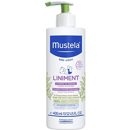МУСТЕЛА ЛИНИМЕНТ ЗА ПОЧИСТВАНЕ ПРИ СМЯНА НА ПЕЛЕНИ 400МЛ
