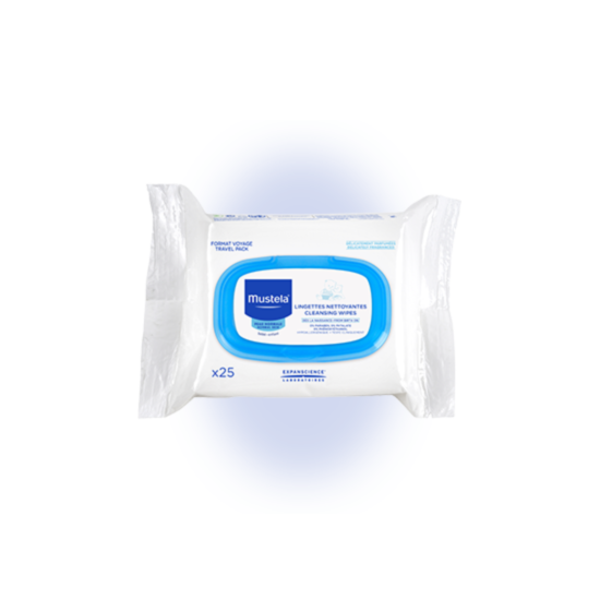 Вземете една Мустела кърпичка от пакета и почистете внимателно лицето, ръцете, зоната под пелените или тялото на детето. Не забравяйте да затворите капачето след употреба. Не изхвърляйте употребената кърпичкa в тоалетната чиния.
