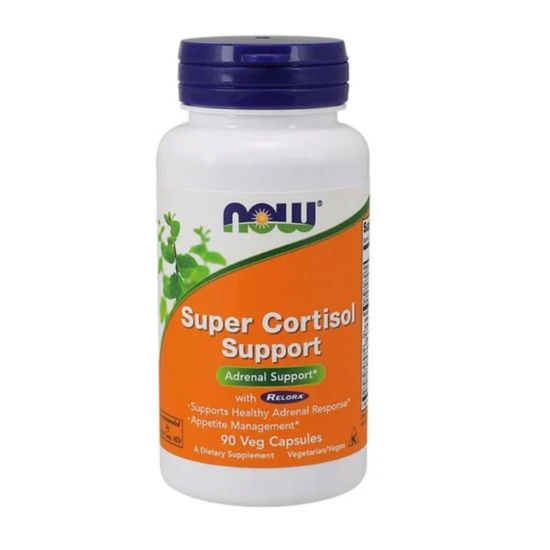Now Foods Super Cortisol Support е хранителна добавка, съдържаща комбинация от билки, витамини, минерали и мастни киселини, която спомага за регулиране нивата на кортизола и телесното тегло, благоприятства функцията на надбъбречната жлеза, повишава енергичността и жизнеността. При стрес производството на кортизол се увеличава, в резултат на което се наблюдава увеличаване на подкожните мазнини и трудно нормализиране на кръвната захар. Ашвангадата е силен антиоксидант, който забавя процеса на стареене на клетките, като спомага за намаляване на физическата и психическата умора. Корените на магнолия и листата на банана намалят високите нива на кортизол, благодарение на което регулират апетита.