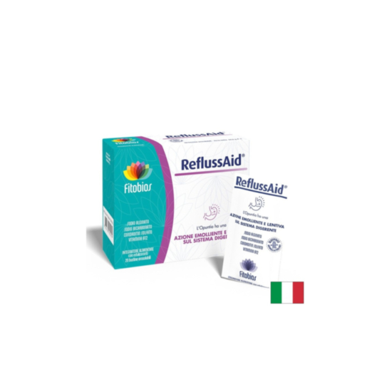Refluss Aid, от италианския бранд Fitobios е хранителна добавка, в удобни ородиспергиращи сашета, предназначена за насърчаване борбата срещу стомашната киселинност и гастроезофагеалния рефлукс. Действа чрез създаване на защитна бариера, която предотвратява рефлукса.
