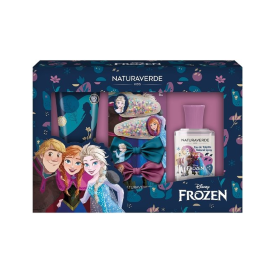 Подаръчен комплект, с който ще зарадвате малките почитателки на анимационния филм Замръзналото кралство. Той се състои от пяна за вана, парфюм и аксесоари за коса. Дизайнът на продуктите е с илюстрации на любимите принцеси от Frozen - Елза и Анна.
