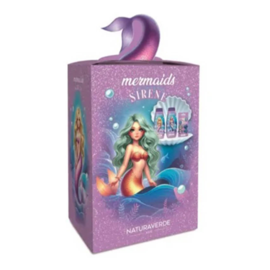 Подаръчен комплект, с който ще зарадвате всяка малка почитателка на русалките. Той се състои от пяна за вана, шампоан и аксесоари за коса. Дизайнът на продуктите е с илюстрации на красиви русалки.