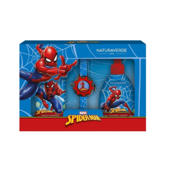 НАТУРАВЕРДЕ КОМПЛЕКТ СПАЙДЪРМЕН ДУШ ГЕЛ ЗА КОСА И ТЯЛО 250МЛ+ТЕЧЕН САПУН 300МЛ+ЧАСОВНИК ПРОТЕКТОР