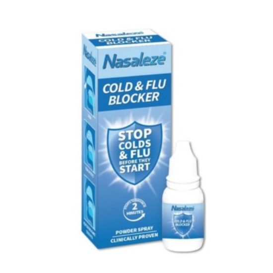НАЗАЛЕЗЕ КОЛД ФЛУ БЛОКЕР СПРЕЙ ЗА НОС 800МГ е прахообразен спрей за нос. След впръскване, при допир с носната лигавица, прахообразните частици образуват гелообразна защитна бариера, която предпазва от вируси и бактерии и ги деактивира. При започнала настинка, спреят съкращава периода на боледуването. Клинично доказано подпомага стопиране развитието на вирусите и грипа и скъсява периода на боледуване. Подходящ за възрастни, спортисти, бременни жени, кърмачки и деца над 3 годишна възраст. Ако употребявате успоредно друг спрей за нос, то трябва да впръсквате спрея Назалезе отново след другия, за да възстановите предпазващата бариера върху носната лигавица. Може да се употребява с други лекарства, като част от терапията срещу вируси, настинки и грип. Не причинява усещане за стичане в гърлото и давене.