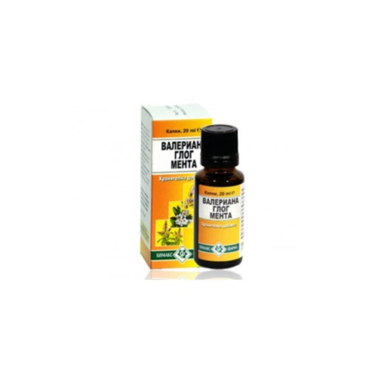 Тинктура валериана, екв. на 66 мг корен валериана, Тинктура глог, екв. на 66 мг листа и цвят глаг, Тинктура лютива мента, екв. на 16,5 мг листа лютива мента и 16 мг Масло лютива мента.