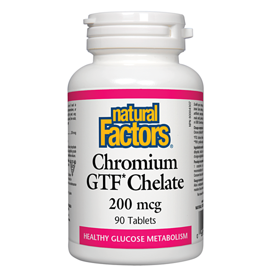 Natural Factors Хром GTF е хранителна добавка, естествено извлечена от дрожди, лесна за абсорбция от тялото. Тя допринася за поддържане на нормалните нива на инсулина, на метаболизма на въглехидратите и на мазнините. Хромът в тази формула е естествено свързан с глицин, глутаминова киселина, цистеин и ниацин. Той е основният минерал, който е необходим за производството на инсулин и е полезен при проблеми с ниското и с високото кръвно налягане. Доказано е, че хромът действа съвместно с инсулина, за да извлече захар от кръвта към тъканите. Оттам той може да бъде използван или съхранен. Дефицитът на хром може да причини болести като например диабет.