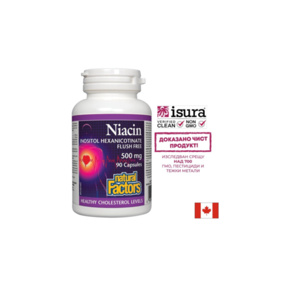 Ниацин 500 mg + Инозитол 120 mg (инозитол хексаникотинат, без зачервяване) – Нервна система и метаболизъм, 90 капсули