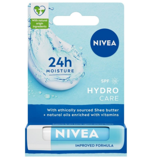 НИВЕА БАЛСАМ ЗА УСТНИ ХИДРО КЕЪР 4.8гр 85088 - Балсамът за устни Hydro Care от Nivea има хидратираща формула с натурални масла и масло от ший, която незабавно се разтапя по устните и ги запазва хидратирани до 24 часа. Той има приятна нежна текстура, дерматологично тестван е и има слънцезащитен фактор SPF15.