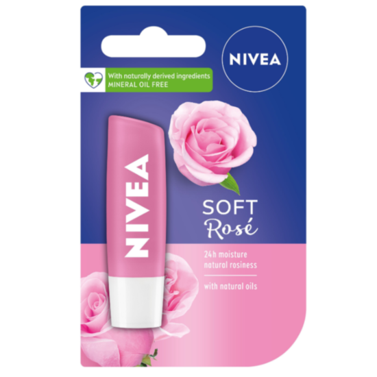НИВЕА БАЛСАМ ЗА УСТНИ SOFT ROSE 5.5МЛ85066 - Балсамът за устни Soft Rose от Nivea подчертава естествената красота на вашите устни, благодарение на деликатния розов цвят и блясък. Той съдържа натурални масла и осигурява 24-часова хидратация.