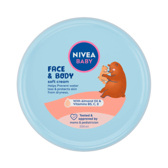 Бебешкия крем за лице и тяло от NIVEA BABY предотвратява изсушаването на кожата. Леката текстура осигурява нежна грижа, защитава кожата и запазва нейната еластичност. Формулата с 96% съставки от естествен произход e oбогатена с бадемово масло, което омекотява и подхранва кожата, витамин B5, който задържа естествената влага, витамин C, който има противовъзпалителни и хидратиращи свойства и витамин E, който действа антиоксидантно и регенериращо. Кремът е с веган, дерматологично и педиатрично тествана и хипоалергенна формула, която е 99.8% биоразградима. Не съдържа микропластмаса, парабени, сулфати, силикон, талк и оцветители.