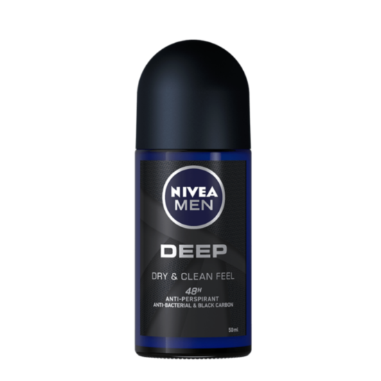 НИВЕА ДЕЗОДОРАНТ РОЛ-ОН МЪЖКИ DEEP ACTIVE 50МЛ 80031 е рол-он дезодорант против изпотяване за мъже, предназначен за ежедневна употреба, който предпазва от изпотяване и неприятни миризми. Подходящ за всеки тип кожа. Ефективната формула с черен карбон има силно действие срещу бактериите и е съчетана с модерен и мъжествен аромат. Нивеа Мен Дийп Дезодорант рол-он против изпотяване за мъже защитава кожата от изпотяване и бактерии, като същевременно предоставя дълготрайно чувство за свежест. Не оставя следи. Дерматологично тестван продукт.