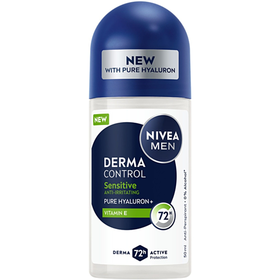 Рол-онът против изпотяване Nivea Men Derma Control Sensitive е разработен да предпазва чувствителната кожа от раздразнения като същевременно осигурява защита срещу неприятни миризми, изпотяване, усещане за парене, сърбеж и суха кожа. С чиста хиалуронова киселина и витамин Е, той предотвратява раздразнението и предлага деликатна грижа. Формулата е толерантна към кожата, дерматологично доказана и не съдържа етилов алкохол.