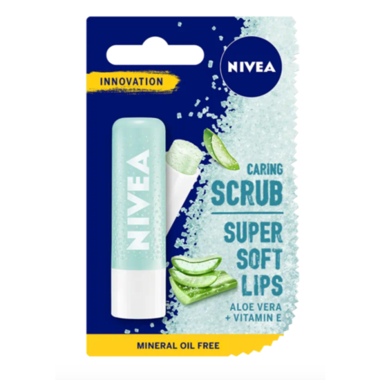 НИВЕА ЕКСФОЛИАНТ ЗА УСТНИ СТИК С АЛОЕ ВЕРА 4,8 ГР. - Нивеа ексфолиант за устни стик с алое вера представлява пилинг за устни в стик и иновация, когато става въпрос за ежедневна грижа за устните. Формулата е с естествено добити пилинг частици от царевично нишесте. Тези частици са изключително нежни към кожата и се разтварят сами, оставяйки устните копринено гладки и подхранени, благодарение на формулата, обогатена с Витамин Е.