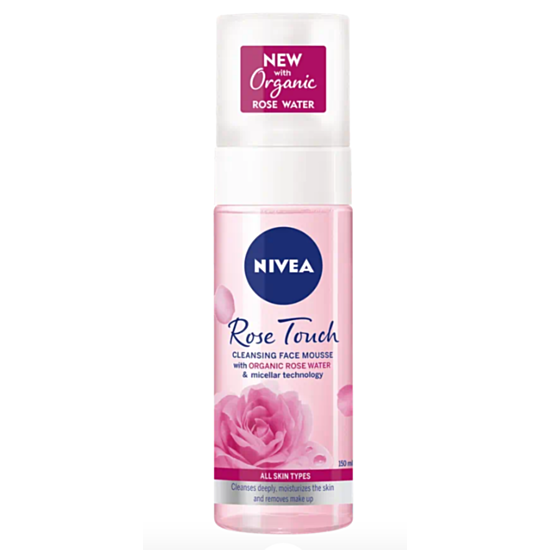 Нивеа Измиваща пяна с Роза 150мл е измиваща пяна за лице, която почиства деликатно кожата от грим и замърсявания и я омекотява. Иновативната формула е с мицеларна технология и био розова вода за деликатно, но ефикасно почистване на всеки тип кожа. Дерматологично тестван продукт.