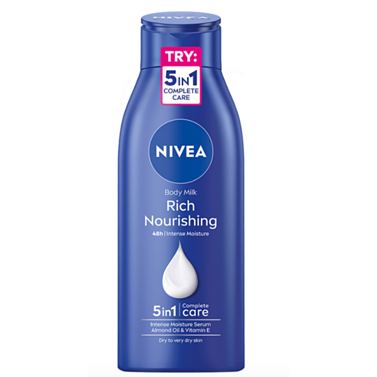 НИВЕА МЛЯКО ЗА ТЯЛО ПОДХРАНВАЩО 250МЛ 80201 - Подхранващото мляко за тяло от NIVEA обгрижва кожата и я хидратира в продължение до 48 часа. Формулата му е обогатена с NIVEA серум, бадемово масло и витамин Е, които имат интензивни подхранващи и хидратиращи свойства. Още след първото нанасяне грубата и суха и кожа е във видимо подобрено състояние. В баланс с естествения микробиом на кожата.