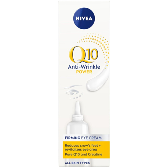 НИВЕА Q10 POWER ОКОЛООЧЕН КРЕМ ПРОТИВ БРЪЧКИ 15МЛ 81288 е околоочен крем против бръчки, който изглажда бръчките и дълготрайно забавя образуването на нови бръчки. Кремът предпазва деликатната кожа около очите от преждевремено стареене. Специалната формула е обогатена с Q10 и креатин, които ефективно се борят с образувалите се фини линии и несъвършенства, неутрализират признаците на стареене и стимулират естественото производство на колаген. Същевременно възвръщат жизнеността и младежкия вид на кожата и я поддържат кадифено мека и гладка. След използване на околочния крем кожата е осезаемо по-стегната, бръчките около очите и тъмните кръгове са видимо по-малко. Дерматологично и офталмологично тестван продукт.