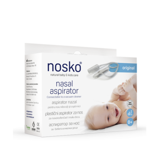 Nosko Вакумен аспиратор за нос е медицинско изделие, което се използва за бързо и деликатно премахване на секретите от носа чрез използването на стандартна домакинска прахосмукачка, като поставите коносовидния край на приставката в прахосмукачката, а другия накрайник в носа на вашето бебе или дете. Nosko Вакумен аспиратор отстранява секретите от нослето чрез постоянно и безопасно всмукване от 0.2 бара, независимо от смукателната мощност на прахосмукачката. Може да сте напълно спокойни за вашето бебе или дете, тъй като процесът е напълно безболезнен и няма никакви странични ефекти. Вакуумният аспиратор за нос Nosko е клинично тестван и одобрен за използване, осигурява по-кратко време за възстановяване при настинки, благодарение на което детето е в състояние да приема нормално храна, вода и да спи по-добре. Не съдържа вредни за здравето материали. Разглабя се на части за по-лесно и ефективно почистване. Може да се стерилизира. Направен от медицинска пластмаса без Бизфенол А, която е биосъвместима и не предизвиква дразнене и алергии. Подходящ за новородени.