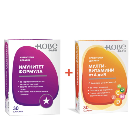 НОВЕ ФАРМ КОМПЛЕКТ МУЛТИВИТАМИНИ + КОЕНЗИМ Q10 И ОМЕГА-3 ТАБЛ. Х 30 + ФОРМУЛА ИМУНИТЕТ КАПС. Х 30