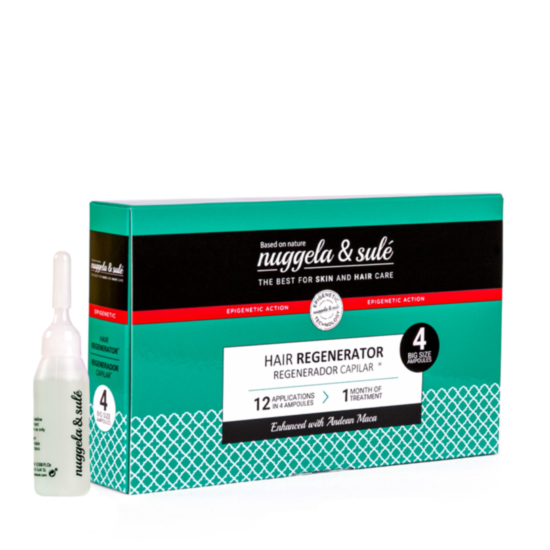 NuggelaSule Hair Regenerator Ampoules е мощна комбинация от активни съставки, витамини и микро-хранителни вещества, обогатена с корен на мака, един от най-добрите ревитализатори в природата, който стимулира растежа на косата, увеличавайки дебелината и плътността на косъма с до 30%.