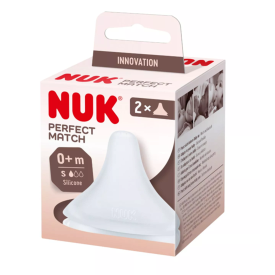 NUK биберон за храна силикон Perfect Match. Размер S 0+м - подходящ за кърма, чай, вода. Адаптира се към вашето бебе - мек и еластичен. Приема се от 98% от бебетата