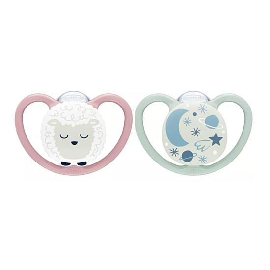 НУК ЗАЛЪГАЛКА SPACE/NIGHT СИЛИКОН 0-6М 2БР+КУТИЯ ОВЦА 10730899