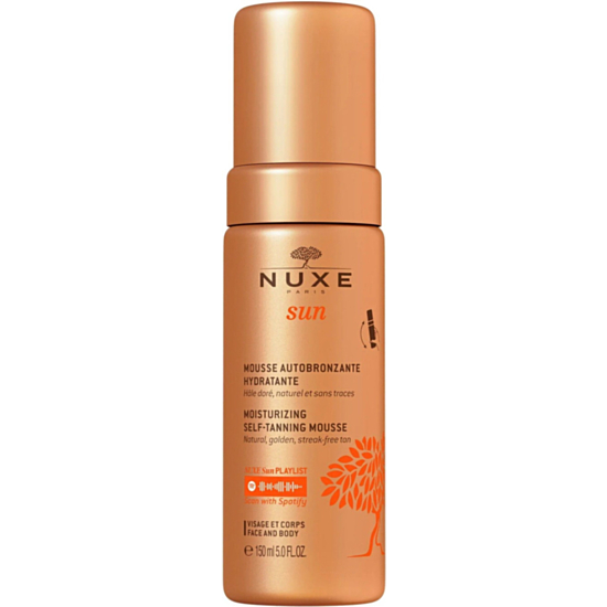 Nuxe Sun е автобронзираща пяна, която ще ви дари с равномерен златист и сияен тен още от първата употреба. Формулата му е обогатена с хиалуронова киселина, за да ви дари с хидратация. Неговата леко оцветена текстура на пяна се плъзга идеално по кожата за лесно нанасяне и тен без следи, видим до една седмица. Неговият вкусен аромат с нотки на сладък портокал, тиаре и ванилия е неустоима покана да се насладите на лятото. Формулиран е с 98% съставки от естествен произход. Без бели следи. Подходящ е за всеки тип кожа.