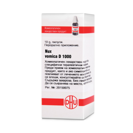 DHU Nux Vomica D1000 представлява хомеопатичен лекарствен продукт, приготвен от разреден екстракт от стрихниново дърво. Нукс вомика е монопрепарат за прложеие при психични неразположения и храносмилателни смущения. Укрепва имунната система. Подпомага нормалната функция на дихателните пътища при наличие на инфекции. Препаратът е приложим и за облекчаване на болки в двигателния апарат. Хомеопатичните лекарства представляват силно разредени субстанции на неорганични соли, минерали, растения, тъкани, отрови и др., които носят в себе си специфичното действие, характерно за веществото, от което са получени. Най-общо казано, действието на хомеопатичното лекарство се състои в подаването на сигнал към организма, който да мобилизира самооздравителните си сили на всички нива: умствено, емоционално и физическо.