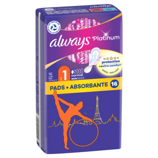Превръзките Олуейз осигуряват надеждна и сигурна защита по време на месечния цикъл. Те имат меко покритие, което допринася за изключително комфортно усещане. Сърцевината разполага с абсорбиращ материал, който превръща течността в гел. Многобройните странични микро-възглавнички предотвратяват протичане. Крилцата задържат превръзката на мястото и гарантират свобода и лекота при движенията. Серията Платинум е разработена с внимание към детайлите и женските извивки, за да осигури ненадминат комфорт и защита.