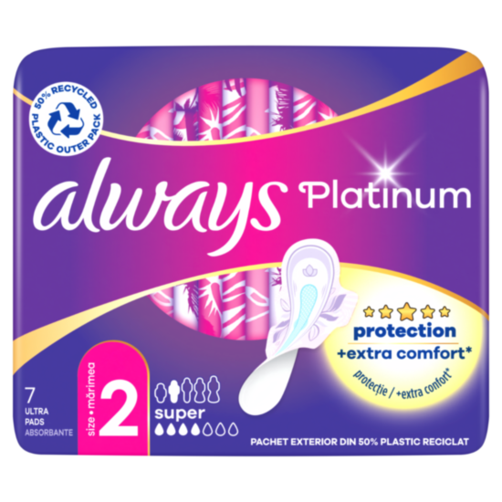 Превръзките Олуейз осигуряват надеждна и сигурна защита по време на месечния цикъл. Те имат меко покритие, което допринася за изключително комфортно усещане. Сърцевината разполага с абсорбиращ материал, който превръща течността в гел. Многобройните странични микро-възглавнички предотвратяват протичане. Крилцата задържат превръзката на мястото и гарантират свобода и лекота при движенията. Серията Платинум е разработена с внимание към детайлите и женските извивки, за да осигури ненадминат комфорт и защита.