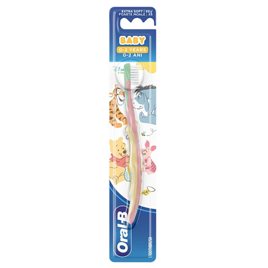 ОРАЛ-Б ЧЕТКА ЗА ЗЪБИ ДЕТСКА POOH BABY 0-2 ГОДИНИ - Нежна бебешка четка за зъби, предназначена за почистване на току-що изникналите бебешки зъбки. Ефикасно отстранява плаката по зъбите и венците и предотвратява появата на кариеси. Четката за зъби е със страхотен дизайн с любимите детски герои.