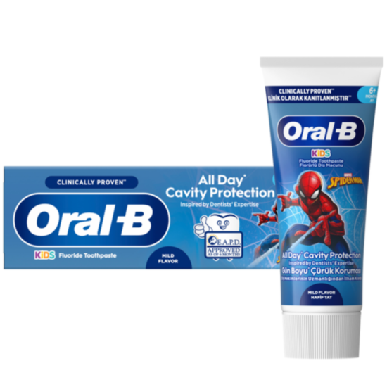Пастата за зъби Oral-B е специално създадена за деца на възраст от 6+ години в сътрудничество със зъболекари, за да помогне за предотвратяване на кариес, като предпазва зъбите от ежедневните киселини и захари. Съдържа подходящо за възрастта ниво на флуорид за защита на плътността на емайла.