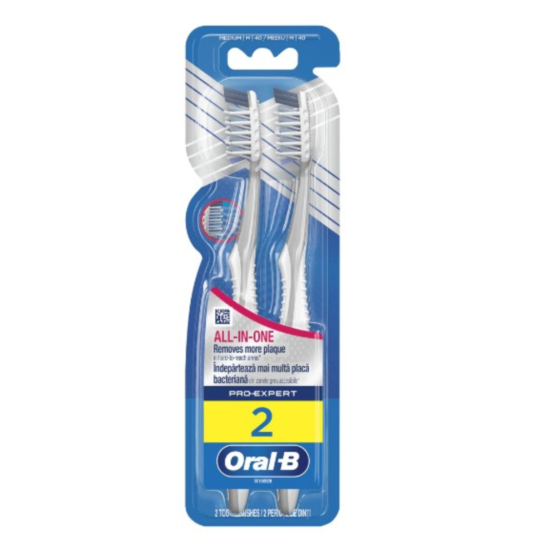 ОРАЛ-Б ЧЕТКА ЗА ЗЪБИ CROSS ACTION EXPERT 40 МЕДИУМ 1+1 - Тя има 7 предимства за чиста и здрава устна кухина. Премахва до 99 процента плака от труднодостъпни места. Помага за поддържане здравето на венците. Почиства линията на венците. Премахва промяна на цвета. Премахва бактериите, които са отговорни за миризмите и се заселват на езика. Масажирайте венците. Нежен към емайла.