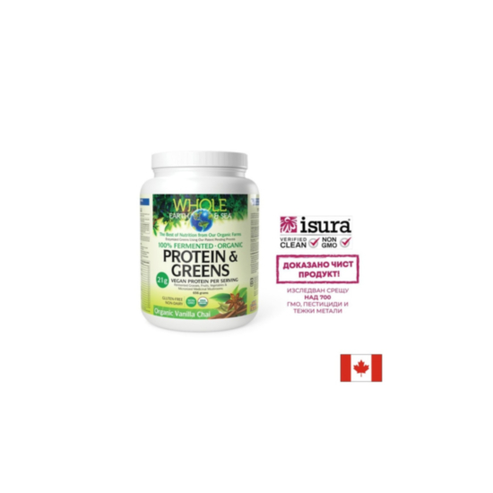 Whole Earth & Sea® 100% Fermented Organic Proteins & Greens е подсладен с нискогликемична стевия и е с приятен вкус на ванилия. Една мерителна лъжичка /32.8 g/ се разтваря във вода, сок или друга предпочитана напитка.