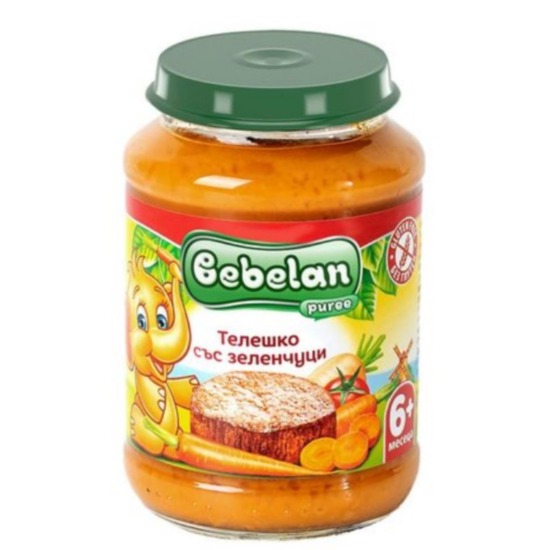БЕБЕЛАН 7141 МЕНЮ ТЕЛЕШКО СЪС ЗЕЛЕНЧУЦИ 6+ 190ГР. - Телешко пюре със зеленчуци е с приятен вкус и е предназначено за деца над 6 месечна възраст. То осигурява необходимите витамини и хранителни вещества за правилното развитие на Вашето дете, благодарение на съдържащите се белтъчини, мазнини и въглехидрати. Превъзходната комбинация от телешко месо, моркови и пащърнак, допринася за изграждането на хранителни навици на детето чрез опитване на нови вкусове и текстури. Пюретата на Bebelan са направени изцяло от висококачествени продукти, без стабилизатори, оцветители и консерванти. Съдържанието на сол се дължи изключително на наличието на естествено съдържащ се в храната натрий.