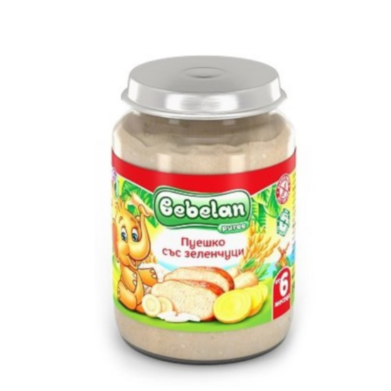 БЕБЕЛАН 7110 ПЮРЕ ОТ ПУЕШКО С ЗЕЛЕНЧУЦИ ПАЩЪРНАК И КАРФИОЛ 6М+ 190ГР.