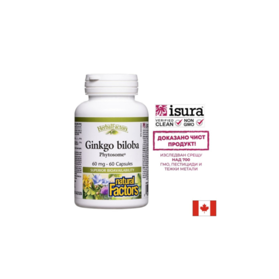 Гинко билоба Фитозоми на канадската марка Natural Factors е натурален продукт ефективно подобряващ оросяването на мозъка и крайниците.