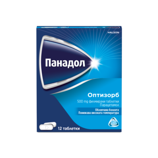 ПАНАДОЛ ОПТИЗОРБ ТАБЛ. 500 МГ Х 12 е аналгетично и температуропонижаващо лекарствено средство, което се използва за симптоматично лечение на повечето състояния, свързани с лека до умерена болка и висока температура, например главоболие, включително мигрена, зъбобол, болки в гърба, ревматични и мускулни болки, болки при възпалено гърло и менструални болки.