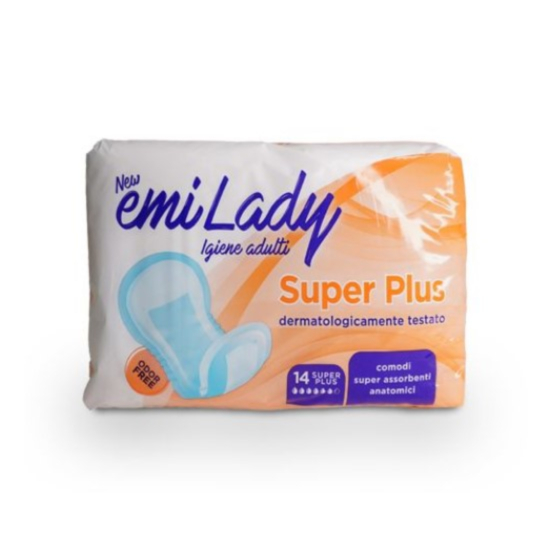 ПАРЧЕТА ЗА РОДИЛКИ ЕМИ ЛЕЙДИ СУПЕР ПЛЮС Х 14БР. са анатомично оформени хигиенни подложки за инконтиненция, проектирани да гарантират висока абсорбция и по този начин да ви осигурят максимална безопасност по всяко време на деня. Еми Лейди са снабдени с мек двуслоен филтър, който разпределя течностите равномерно по цялата му дължина, като поддържа кожата ви идеално суха и защитена от възможни раздразнения и зачервявания. Абсорбиращото тяло е съставено от целулозен мъх, смесен със специални суперабсорбиращи компоненти, системата "Odor Free", които напълно задържат течностите и елиминират всички неприятни миризми.