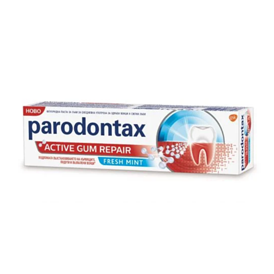 ПАРОДОНТАКС ПАСТА ЗА ЗЪБИ АКТИВ РИПЕЪР 75МЛ е флуоридна паста за зъби, за ежедневна употреба за здрави венци и здрави зъби.Подпомага възстановяването на кървящите подути и възпалени венци. Здравите венци са плътно прикерпени към зъбите. Предлага се в опаковка от 75мл.