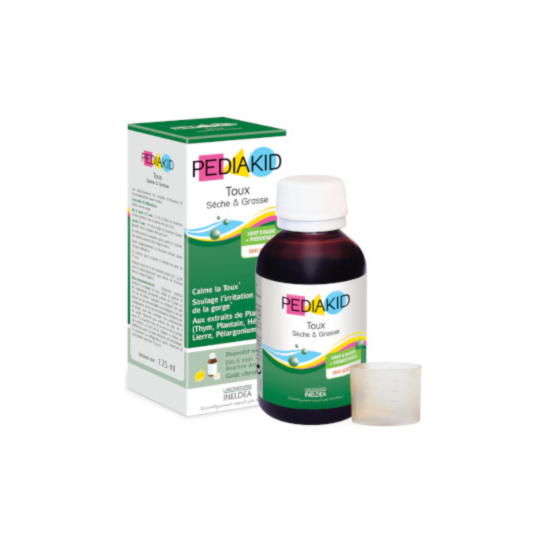 Педиакид сироп за кашлица съдържа природни активни съставки, които успокояват дихателните пътища, при суха и влажна кашлица. Продукта е подходящ за деца над 6 месеца, може да се използва и от деца над 15 години.