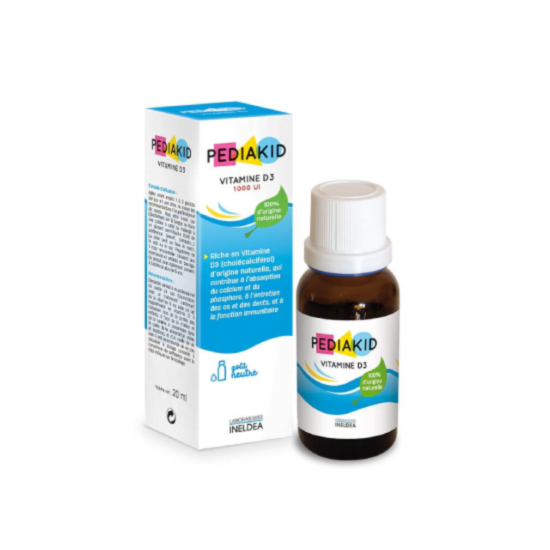 Педиакид витамин D3 капки допринася за поддържането на здрави кости и зъби, чрез по-доброто усвояване на калция и фосфора в организма. Витамин D3 е необходим за усвояването на калций и фосфор в костите, помага за поддържането на здрави кости и зъби. Той е жизненоважен за поддържане на добро здраве. Научни изследвания показват, че населението страда от недостигът на Витамин Д, което може да доведе до редица заболявания. Затова е изключително важно да се осигури оптималният му прием. Количеството в 2 капки (0.08 ml) 100% природен Vit.D3 25 μg (1000 IU) – извлечен от ланолин, гарантира правилното му усвояване и допринася за поддържането на костите, зъбите, и укрепване на естествените защитни сили, а природният Vit.E е богат на токофероли. Педиакид витамин D3 капки имат неутрален вкус и може да се приема от кърмачета.