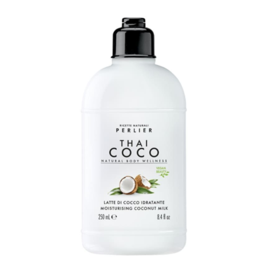 Свежата и интензивно овлажняваща кремообразна текстура, на веган формулата на Perlier Thai Coco мляко за тяло с чист органик кокос и пантенол, осигурява на кожата хидратация и копринена мекота през целия ден. Като древен ритуал, тайландския масаж с кокос, премахва стреса и напрежението, възстановява жизнената енергия, прави кожата мека, гладка и красива. По време на прилагане, с наслада вдишвайте дълбоко, приятният тропичен аромат на кокос, който остава на кожата за дълго и ви пренася в приказната атмосфера на тропически плаж. Попива бързо и е подходящо за ежедневно прилагане, както и е перфектно за нанасяне след излагане на слънце.