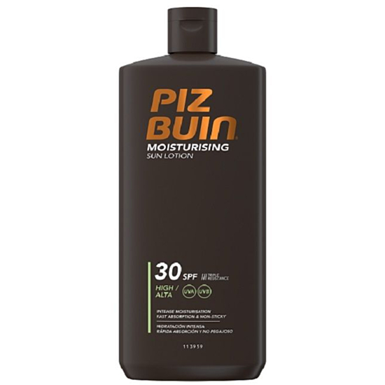 Хидратиращият слънцезащитен лосин Piz Buin Moisturising е с висока степен на защита SPF30 и тройна защита. Съдържа усъвършенствани UVA и UVB филтри за незабавна и ефективна защита. Той интензивно хидратира кожата, като я прави мека и гладка. Помага за защитата на кожата срещу агресивни елементи като хлор, морска и солена вода. Устойчив е на пот и вода. Обогатен с мощния антиоксидант витамин Е, той помага за предотвратяване на преждевременното стареене на кожата, причинено от слънцето. Немазната, неслепваща формула интензивно овлажнява кожата, оставяйки я гладка и копринено мека. Защита срещу дълги UVA лъчи. Бързо абсорбиращ, без бели следи.