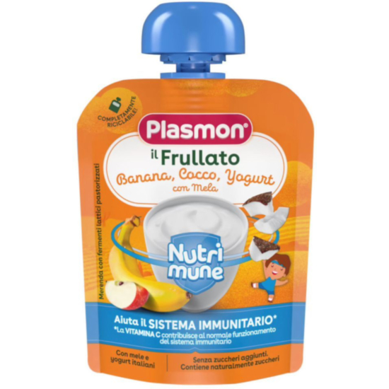 Плодовата закуска на марката Plasmon е чудесен вариант за бързо хапване. Подходящо е за деца над 8 месеца. Предлага се в удобна опаковка от 85 g, което е достатъчно за междинно хранене или десерт. Опаковката е много подходяща за времето когато сте на разходка или път. Капачката се отвърта лесно и детето може само да засмуква от пюрето.